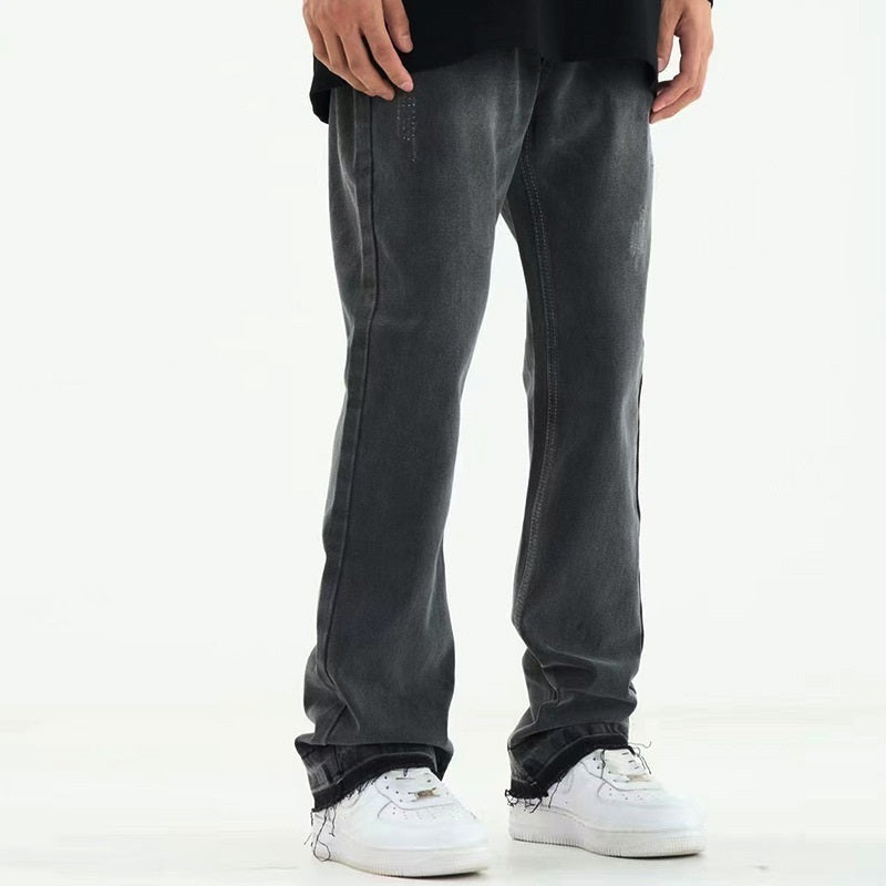 Micro Flared Foot Fringe Worn Jeans Men's Ins