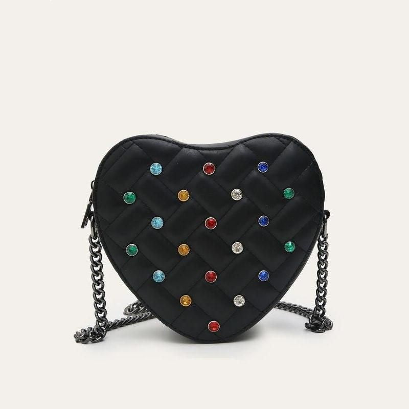 Heart Shaped Crossbody Bag with Colorful Rhinestone Detailing