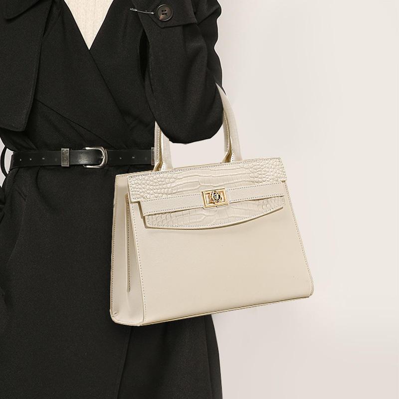 Crocodile Pattern Cowhide Square Handbag - Off White