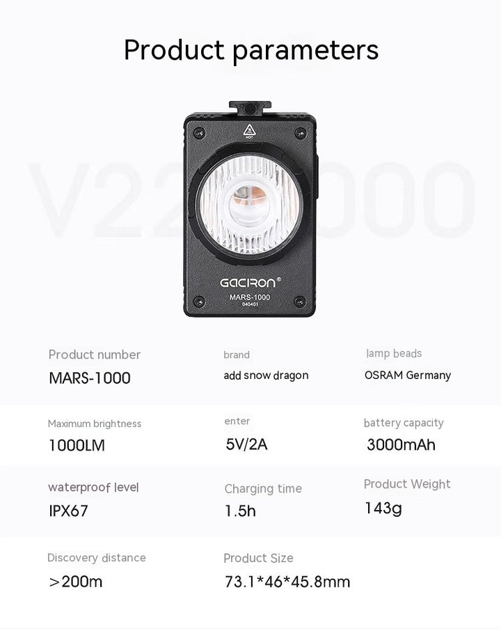 MARS-1000 front light+R03 wire control+H17 bracket+HO7L buckle+Type-c charging cable