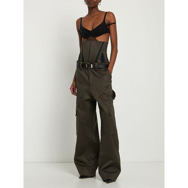 Slim-Fit Contrasting Cargo Pants with Removable Girdle
