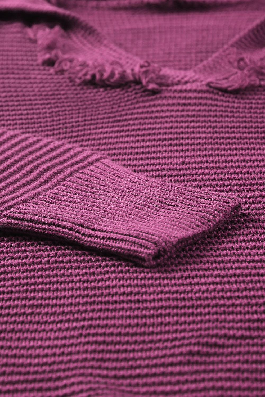 Horizontal Ribbing Fringe Trim Hooded Sweater