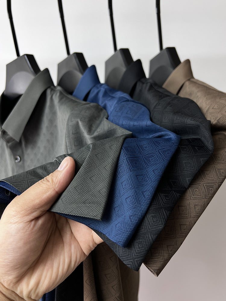 High-end Elegant Ice Silk Short Sleeve T-shirt Men's Lapel Summer Plaid Polo Shirt