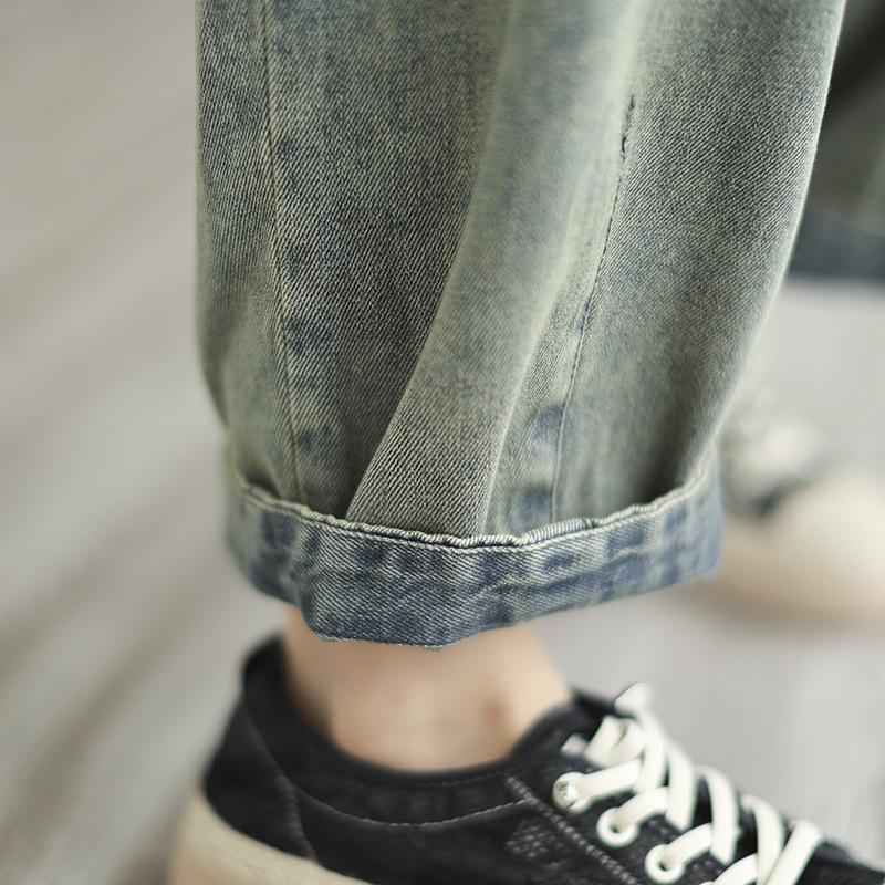 Irregular Flower Print High-rise Straight-leg Casual Jeans Street Style Trousers - Trendha
